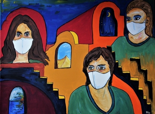 Ich male hauptsächlich mitGouache auf Karton und Leinwand, oder Aquarell. Die lavierten Federzeichnungensind auf leichtem Aquarellpapier angelegt.